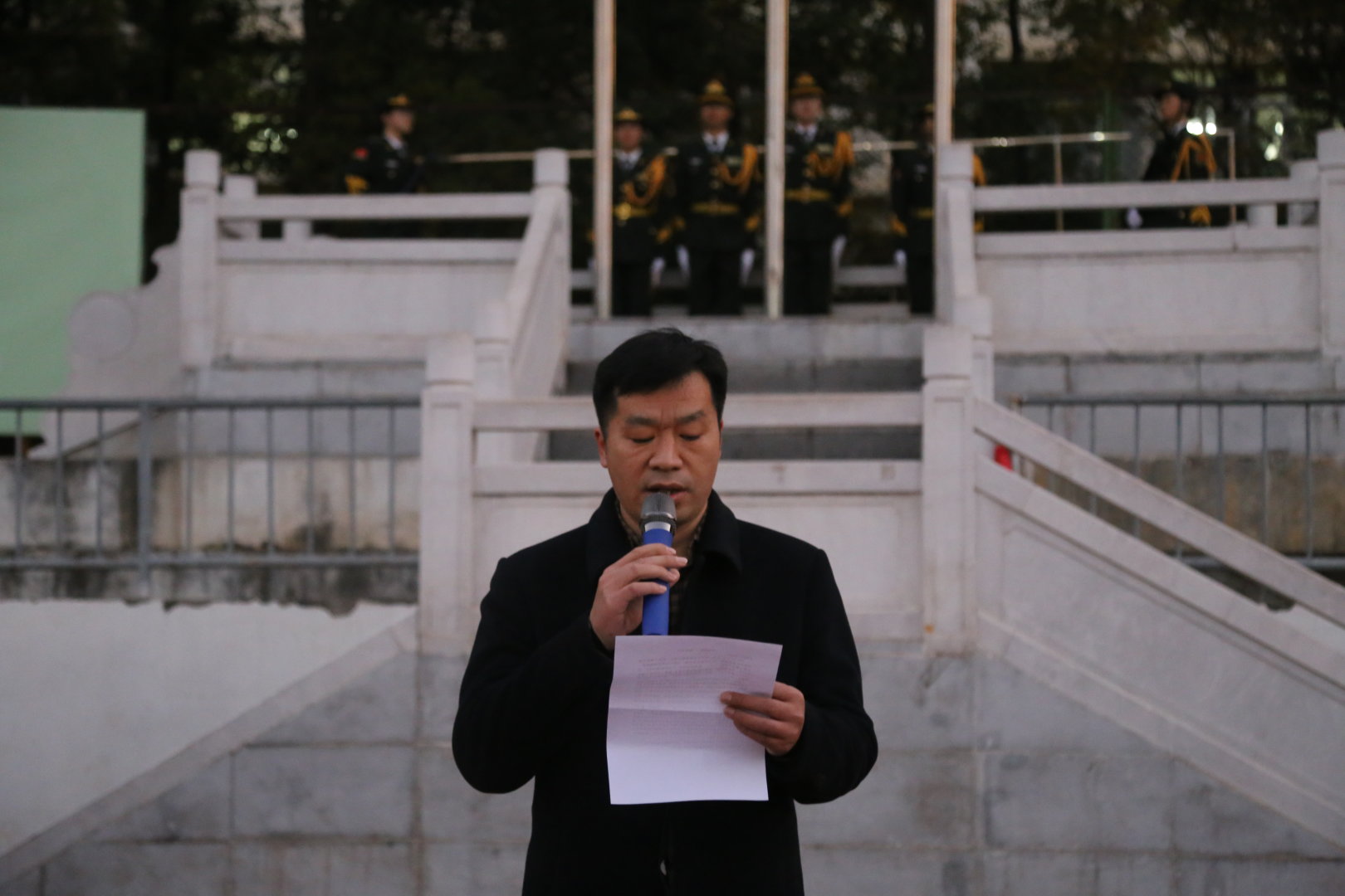 刘建祥通过讲述南京大屠杀的历史告知同学们和平是需要争取的,和平是需要维护的,忘记历史就意味着背叛,希望通过此次升旗仪式,同学们能够铭记历史,缅怀南京大屠杀的无辜死难者,缅怀所有惨遭日本侵略者杀戮的死难同胞,缅怀为中国人民抗日战争胜利献出生命的革命先烈和民族英雄;同时,在新的征程上,生态师生能自觉坚持以习近平新时代中国特色社会主义思想为指导,坚定理想信念,志存高远,为实现中华民族伟大复兴的中国梦而努力奋斗。(图 /文:杨益琼/审核人:刘建祥/责任编辑:袁梓玥)