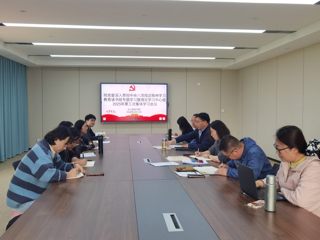 4月10日,水土保持公司党委理论学习中心组在生态楼325会议室举行深入贯彻中央八项规定精神学习教育读书班专题学习暨理论学习中心组2025年第三次集体学习会议,公司党委理论学习中心组全体成员参加学习,会议由党委书记刘建祥主持。