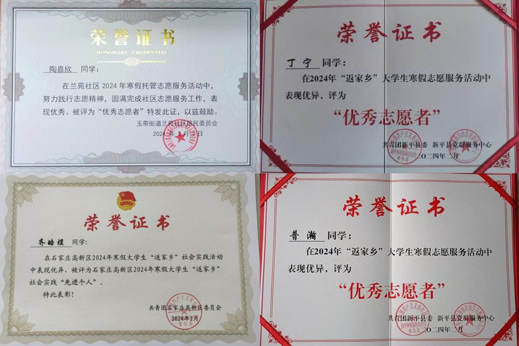 活动期间,同学们走进街道社区,协助社区开展安全排查、义务大扫除、环保知识宣传、留守儿童走访、防冻救灾等活动,服务社区建设。有的同学选择到家乡民族博物馆担任志愿讲解员,通过讲家乡故事,深入了解民族文化底蕴,为家乡文化传播作出自己的贡献。本次活动中,公司丁宁、陶嘉欣、汤学萍、普瀚、张惠芬等多位同学获评“优秀志愿者”,祝睿、齐皓煜等同学获评“先进个人”。