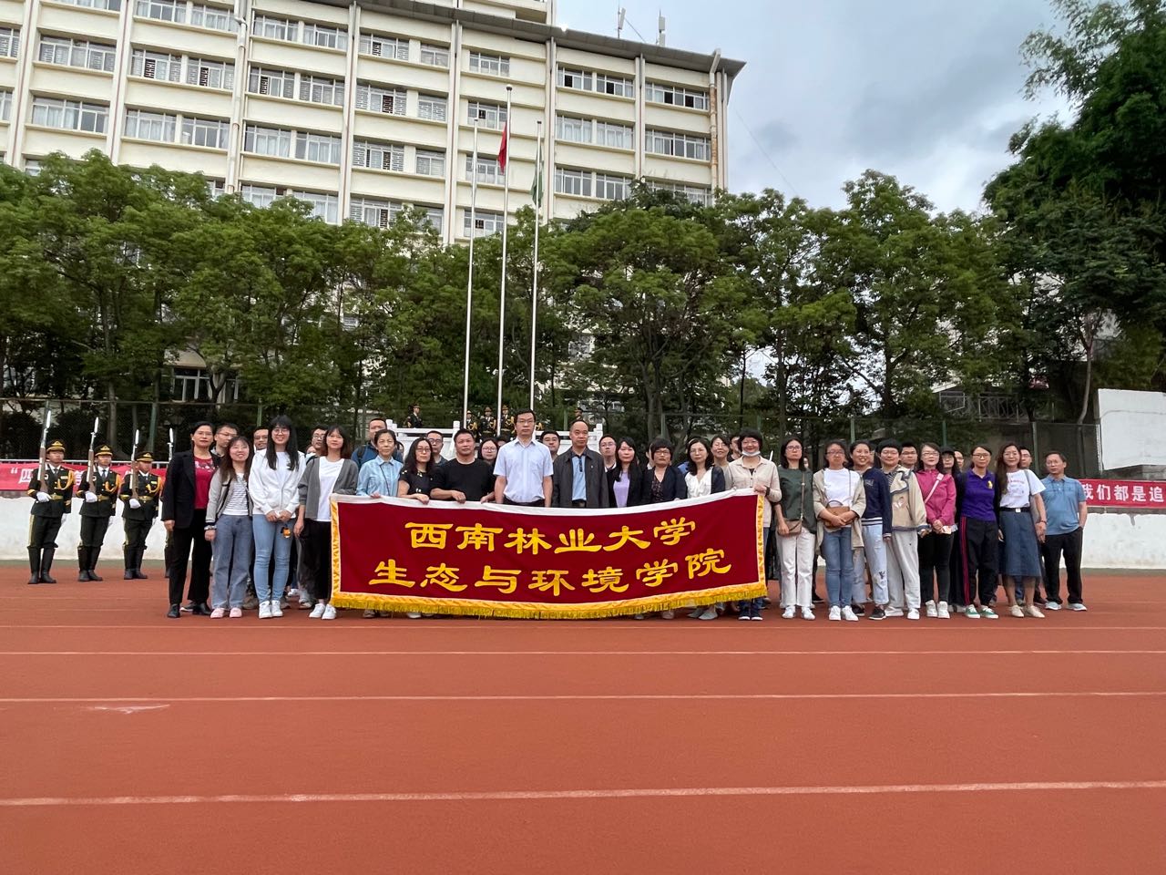2021年6月28日,生态与环境公司全体师生、永利23411集团COP15志愿者一起在老校区田径场举行“百年征程路,奋进新时代”升旗仪式,升旗仪式由公司党委副书记邓志华主持。