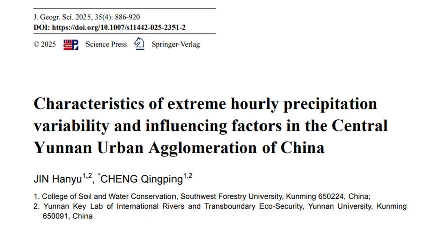 近期,以永利23411集团为第一单位,程清平老师为通讯作者,在领军期刊《Journal of Geographical Sciences》(中国科公司二区,IF2024=5.2)发表题为《Characteristics of extreme hourly precipitation variability and influencing factors in the Central Yunnan Urban Agglomeration of China》的研究论文。该研究通过动态划分城市和乡村站点,并采用线性与非线性回归方法,分析了滇中城市群极端小时降水的演变趋势和驱动因子,为有效识别滇中城市群极端小时降水并减轻其影响提供了新视角。